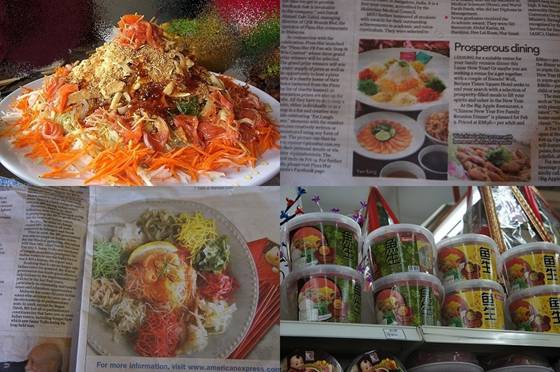 新聞にもイー・サンの話題、広告がたくさん。老舗レストランの今年のスペシャル・イー・サンの紹介や、予約注文、宅配サービスの宣伝など、日本でいうクリスマスケーキかおせち料理のような扱いでしょうか。スーパーにはイー・サンセットも。