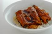 4.Place the glazed eels over a bowl of steamed rice. It makes tasty “Unadon.”