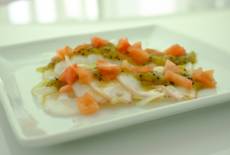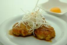 4.Place on a plate and garnish with grated Japanese white radish and boiled green vegetables.