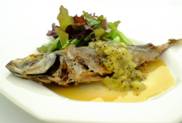 1.Cut off the head of Pacific saury, remove the guts, and fillet. Quickly wash the fillets and dry well with paper towels.