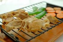 3.Heat a grill well and cook meat and vegetables.