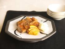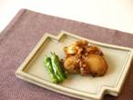 3.Heat sesame oil in a frying pan, place ② shaped as flat round pieces, and cook until both sides become brown. Pour in 100cc hot water, soy sauce, mirin, and sugar. With a lid on, cook until the juice becomes thicken.