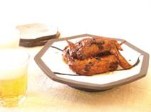 1.Place soy sauce, mirin, sugar and 3 cups of water in a pot and heat up. When boils, add chicken wings and berries of Sansho and shimmer for 15 minutes.
