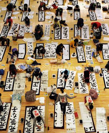 New Year Kakizome Contests takes place in various scales; from a small scale of personal communities such as family, school, or work to a huge scale of thousands of participants such as National Contest held in Nippon Budokan in Tokyo.