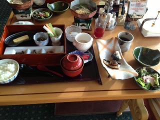 This Ryokan started to serve breakfast way back in Edo period, about 300 years ago, when it was the greatest pleasure for the people to travel between Tokyo and Osaka on foot. The Ryokan master served each guest breakfast and dinner set on a portable small table individually. Even back in those days, breakfast had 5 dishes at least. It seems that the Ryokan has added dishes to the menu during the past 10 years.